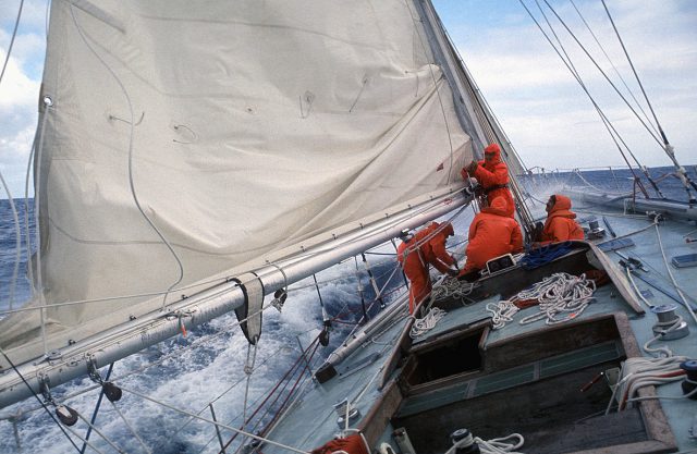 Na een maand op zee wint Sayula II op gecorrigeerde tijd, voor de comfortabele Nicholson 55 genaamd Adventure en Grand Louis, geschipperd door de Fransman André Viant. Tragisch genoeg gaan er drie zielen verloren op zee, waaronder de Fransman Dominique Guillet, co-schipper van 33 Export, en vijf boten halen de finish niet. De race is genadeloos en de schipper van de Poolse boot Otago, een goede zeeman maar een geregistreerde amateur, zegt hardop wat veel mensen denken: “Het is echt zwaar om in zo’n beperkte ruimte te leven in een zeer nauwe ruimte. Zelfs ratten zouden niet zo boven op elkaar kunnen leven zonder af en toe ruzie te maken!” Als ik luister naar Philippe Facque, tegenwoordig directeur van de CDK Technologies-werf, die in 1973 voor André Viant werkte, zijn zijn herinneringen heel anders. Twee jaar eerder had hij, tot groot ongenoegen van zijn ouders, zijn mondelinge examens voor het eindexamen ingeruild voor een eerste trans-Atlantische zeereis. André Viant had zijn talent voor het besturen van een boot snel opgemerkt en bood hem een ritje aan aan boord van de Grand Louis voor de eerste Whitbread. “Ik was 21 jaar oud en kreeg de kans om rond de wereld te racen. Het was gewoon geweldig! In tegenstelling tot de Kriter van Jack Grout, die alleen grote namen aan boord had die niet verder kwamen, was er een fantastische sfeer op onze boot en de eenheid en het vertrouwen die we voelden zijn essentieel in een race als deze. We waren met z’n tienen, met drie mensen tegelijk op wacht – één aan dek, één stand-by en één in de kooi. Het was een gemengde bemanning, bestaande uit de familie van André Viant, afgestudeerd aan de polytechnische school, bedrijfsleider en een ongelooflijk zeiler – zijn dochters Françou en Sylvie, zijn zoon Jimmy en zijn schoonzoon Michel Vanek… en jonge zeilers als Loïc Caradec en ik. Grand Louis was een comfortabele schoener, maar ze was een trage tank. Ik herinner me dat ik pannenkoeken kookte om de tijd te doden in de Indische Oceaan… Omdat het de eerste race rond de wereld was, vertrok iedereen met zware, stevige boten. We wisten niet goed wat we konden verwachten.”